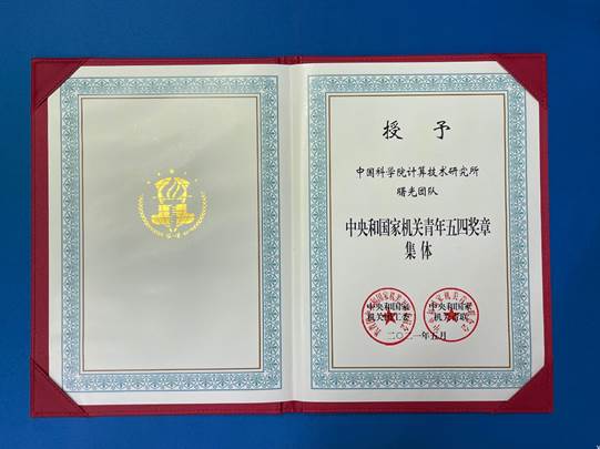 为表彰中央和国家机关优秀青年在各项事业中的杰出贡献,集中展示新时代机关青年的精神风貌和价值追求,激励中央和国家机关广大青年发扬五四精神,勇担历史重任,在全面建设社会主义现代化国家新征程中建功立业,中央和国家机关团工委、中央和国家机关青联表彰了“中央和国家机关青年五四奖章(集体)”。计算所曙光团队荣获“中央和国家机关青年五四奖章(集体)”荣誉称号。