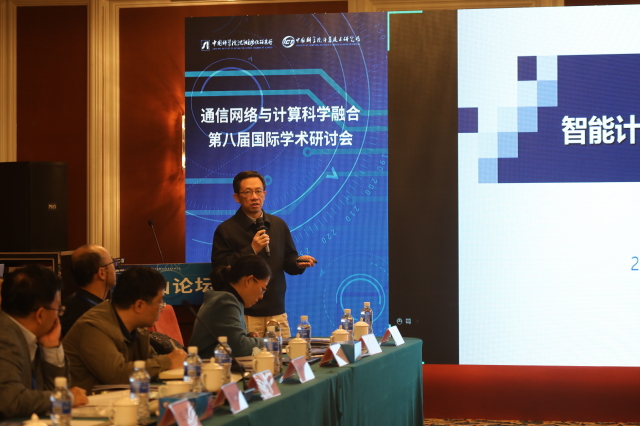 本次研讨会以线上、线下相结合的方式共组织了10场精彩报告。与会学者就网络通信、计算、控制领域的前沿热点问题,包括算法与算力、人工智能、5G/10月14日上午,于海斌主持研讨会,李国杰致辞。