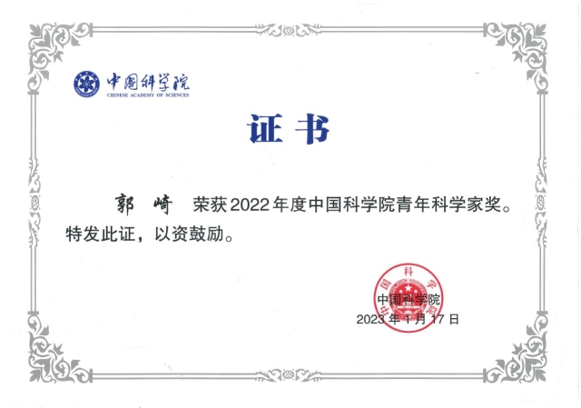 【综合新闻】计算所郭崎研究员荣获2022年度中国科学院青年科学家奖