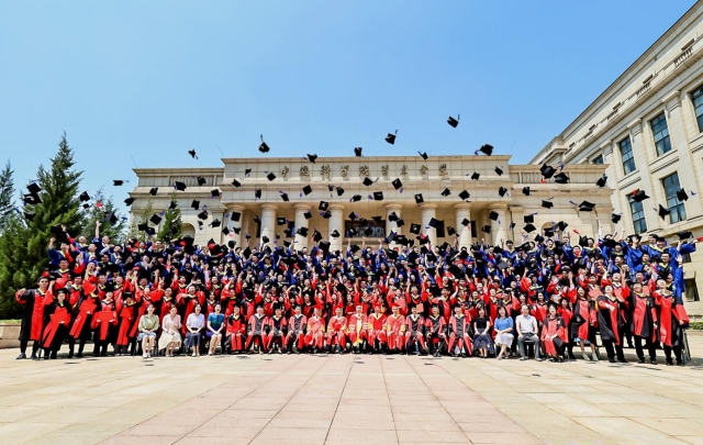 最后,毕业典礼在全体师生齐声高唱《我和我的祖国》的歌声中圆满结束,全体师生在学术会堂合影。