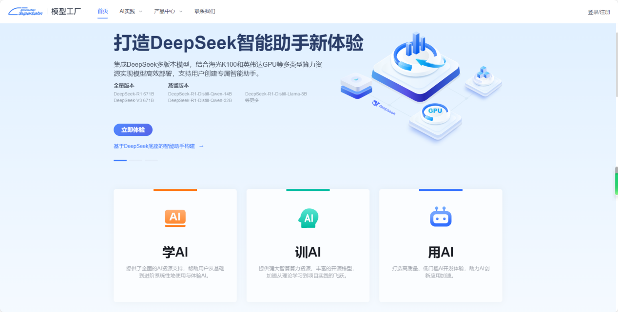 2025年2月11日,中国科学院计算技术研究所提供研发核心技术、中科南京信息高铁研究院提供算力支持的信息高铁模型工厂发布V1.0版本,成功接入DeepSeek系列大模型并实现联网搜索功能,为构建智能化AI应用提供新一代大模型底座,助力千行百业创新发展。平台深度优化了异构智算算力与DeepSeek-R1/V3系列大模型的适配性能,其中为南京城市算力网构建的DeepSeek-R1 671B顶配模型在江苏省属首家部署。信息高铁模型工厂整合智算算力网AI开发平台、模型集市、“小铁”等创新产品,为AI for Science、中小创新型企业提供集算力并网调度、模型汇聚、开发、训练、微调、部署和应用构建的低成本、低门槛一站式AI工程服务,全方位助力各行业领域降低AI研发成本,快速构建专属AI应用生态,赋能智能化未来。