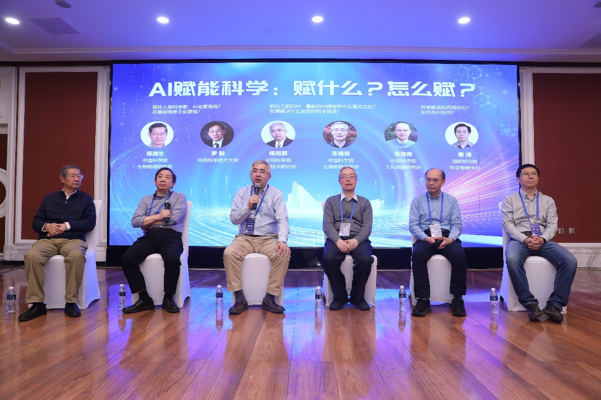 陈润生院士、罗毅教授、中国科学院上海药物研究所朱维良研究员、中国科学院生化细胞研究所陈洛南研究员、微软研究院科学智能中心秦涛教授、陈熙霖研究员共同参与了Panel讨论。