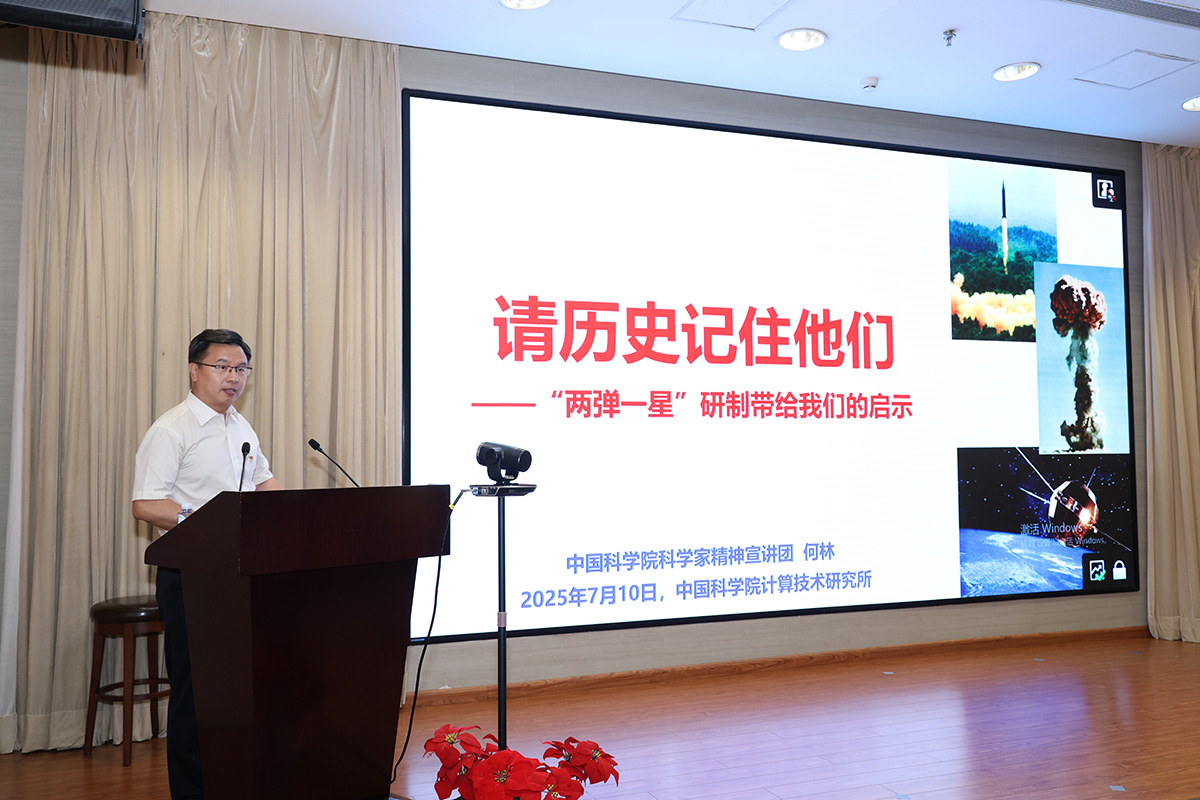 大会邀请了中国科学家精神宣讲团成员、中国科学院科学家精神宣讲团成员、中国科学院老科学家科普演讲团成员何林同志进行《请历史记住他们——“两弹一星”研制带给我们的启示》专题党课授课。他提出,今天,我们回顾前辈的光辉业绩,不仅仅是为了向他们表达敬意,更重要的是从前辈的拼搏奋斗中获得精神养料和前行动力,响应时代召唤,勇担时代使命,在建设世界科技强国的征程中,谱写新篇章,创造新辉煌!